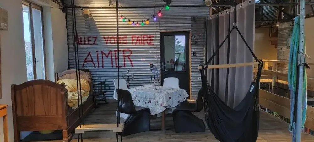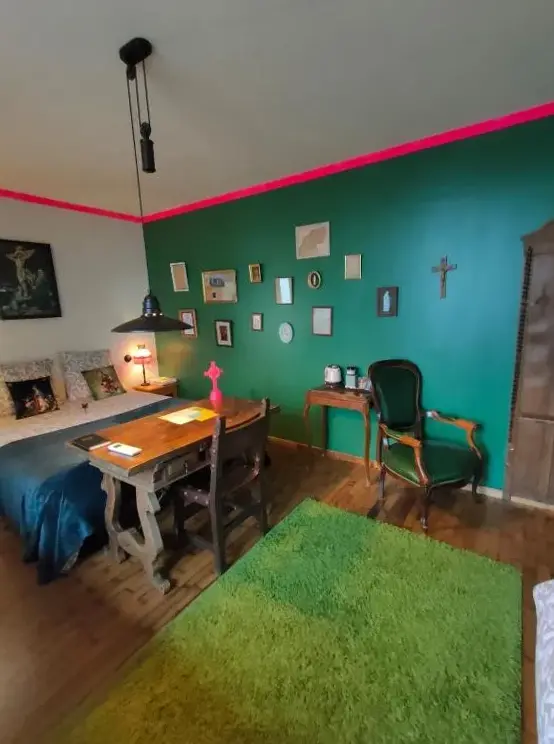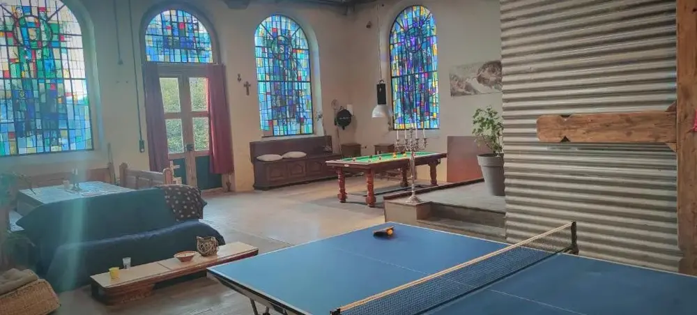 Emplacement très spécial et original, à une bonne distance de voyage de Luxembourg City et Verdun. La conception de cette ancienne église est spéciale, excentrique avec un clin d'œil et destinée aux divertissements intérieurs, pensez à la table de billard, au swing et au dart. Les chambres sont confortables et soignées. La conception de la construction et des chambres est libérale et très originale. Avec une bonne dose d'humour et de créativité. Propriétaire et petite amie des gens super sympa et très hospitaliers. Et parlez anglais!